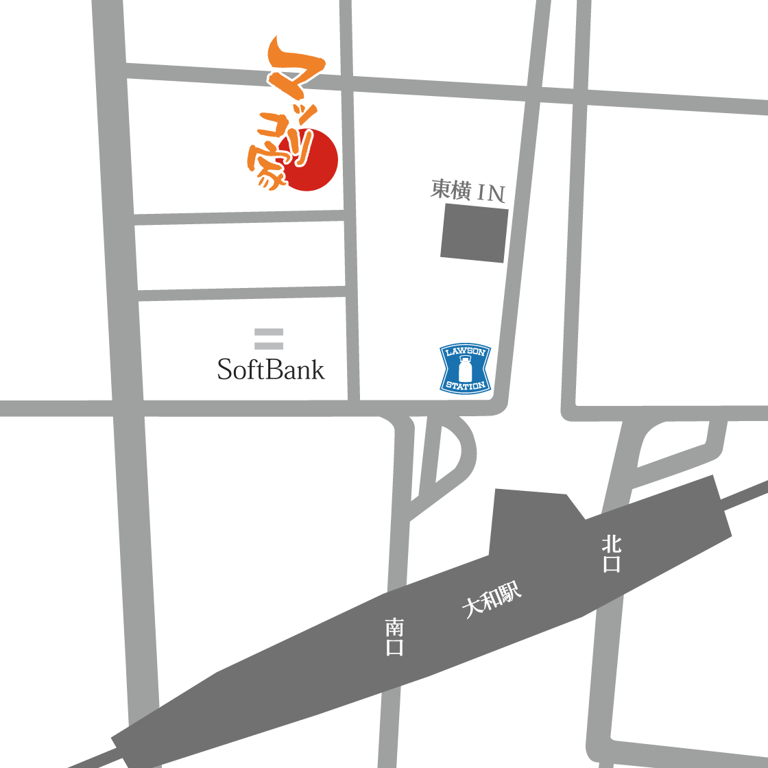 小田急・相鉄「大和市」駅より | 大和市駅南口(小田急口)前ロータリーの前方「あすろーど大和」上左手に見えるソフトバンク様横の路地をお進みください。200m程に左手に当店がございます |